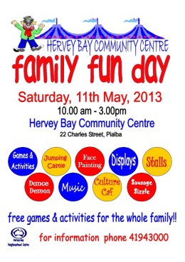 The next free event that I’ve come across is the Family Fun Day put on by the Hervey Bay Community Centre.